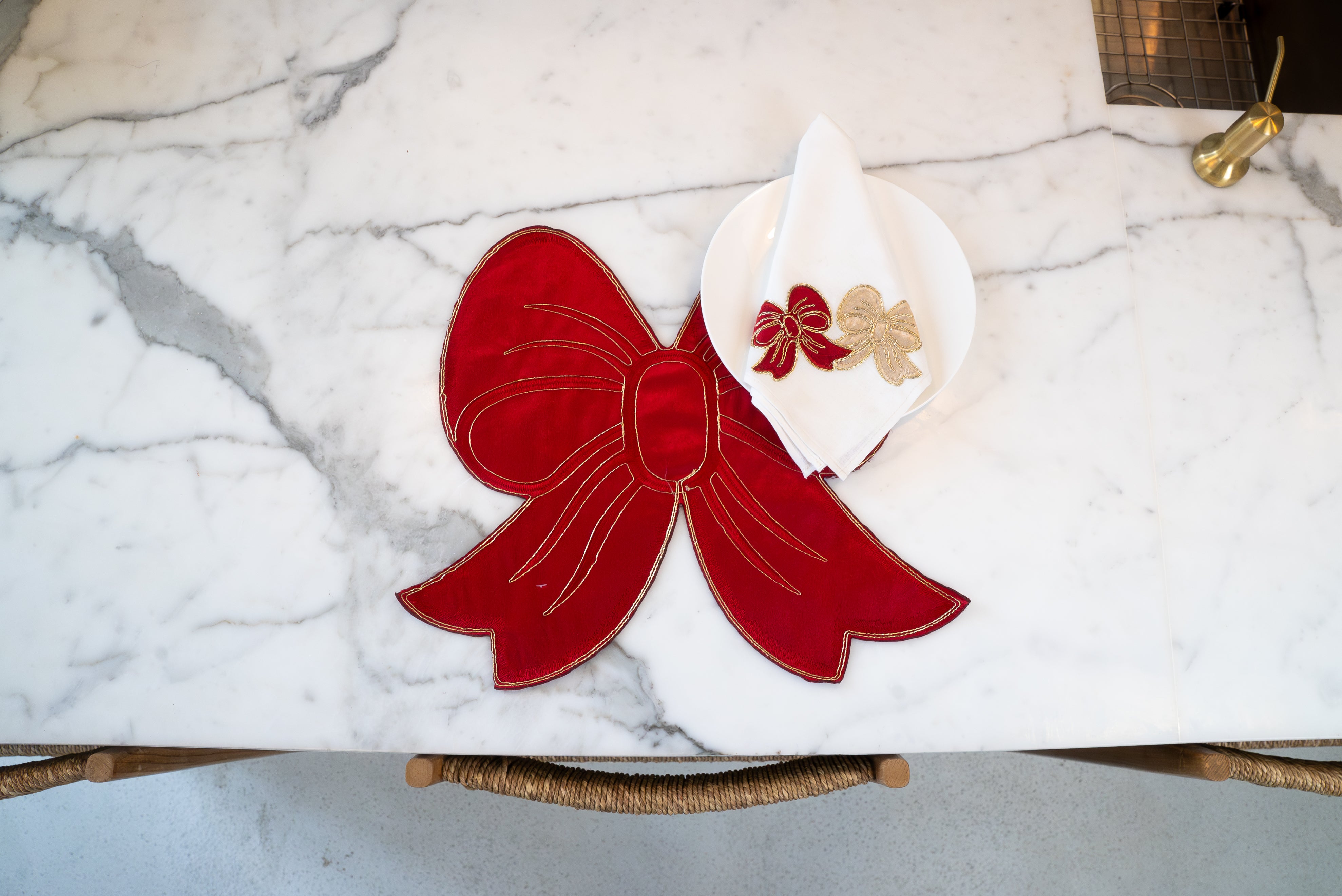 This velvet holiday bow placemat will make any table scape festive, it can be used through out the house and its highly versatile.