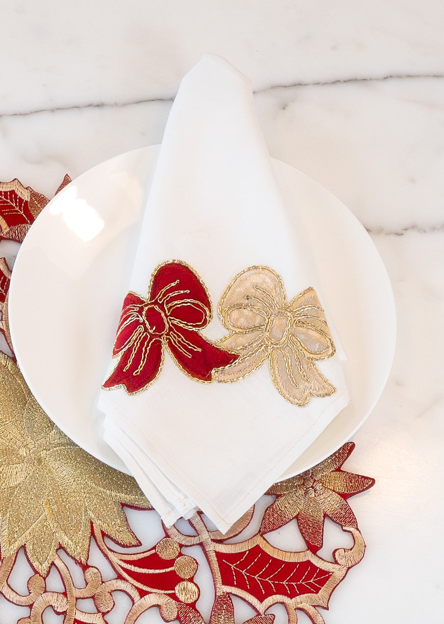 This holiday bow napkin brings a cheerful seasonal touch to your table with its charming festive look.